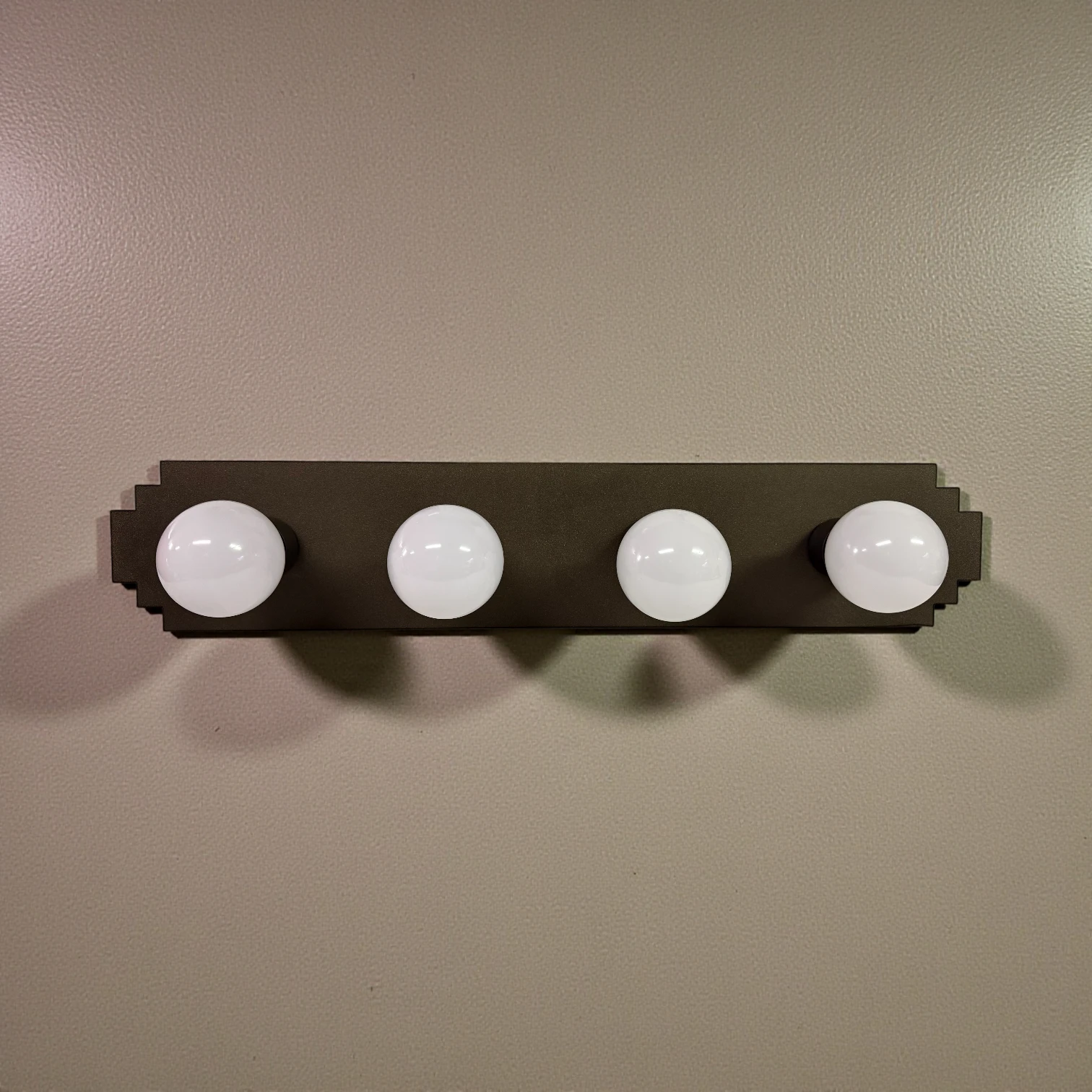 The Modern Southwest Bath Vanity Light features an open bulb design finished in a rich-matte bronze, blending contemporary style with Southwestern influence.
